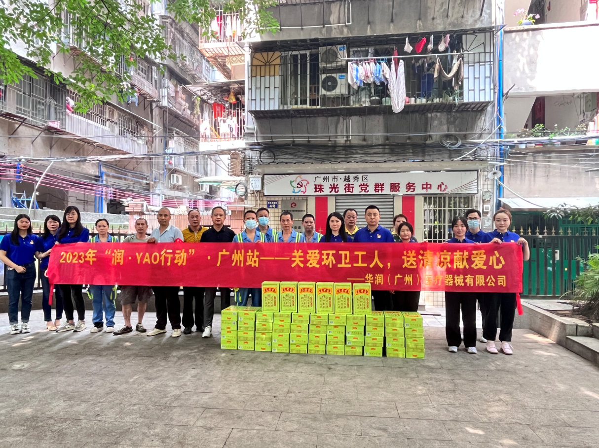 立夏過后的廣州,烈日炎炎,白天最高溫度達(dá)33℃,辛勤的環(huán)衛(wèi)工人堅守崗位,汗流浹背,默默守護(hù)著城市的潔凈美麗。為感謝環(huán)衛(wèi)工人的辛勤付出,積極履行企業(yè)社會責(zé)任,5月18日,華潤(廣州)醫(yī)療器械有限公司組織到辦公地所在越秀區(qū)珠光街道開展“關(guān)愛環(huán)衛(wèi)工人,送清涼獻(xiàn)愛心”活動。