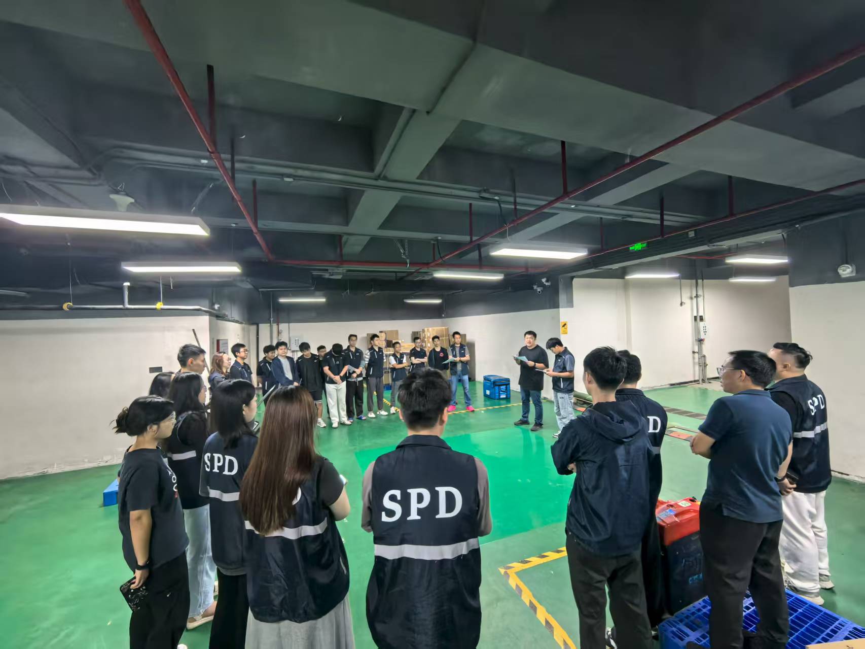 應急小組迅速響應,搶險救援組快速抵達現(xiàn)場,將被積水威脅的貨物轉移至安全區(qū)域,并組織人員堆砌沙包、清理積水,并妥善處置破損物品;警戒疏散組迅速將防洪閘推至預定位置,對倉庫門口區(qū)域警戒,檢查并準備好水泵,引導模擬無關人員有序撤離,維持警戒區(qū)域治安;后勤保障組確認水淹區(qū)域電源情況,進行斷電或恢復供電操作,同時向各小組發(fā)放充足的防洪防汛工具及物資,并與醫(yī)院取得聯(lián)系,記錄溝通結果。最終當現(xiàn)場積水清理完畢,貨物安全轉移,演練圓滿結束。