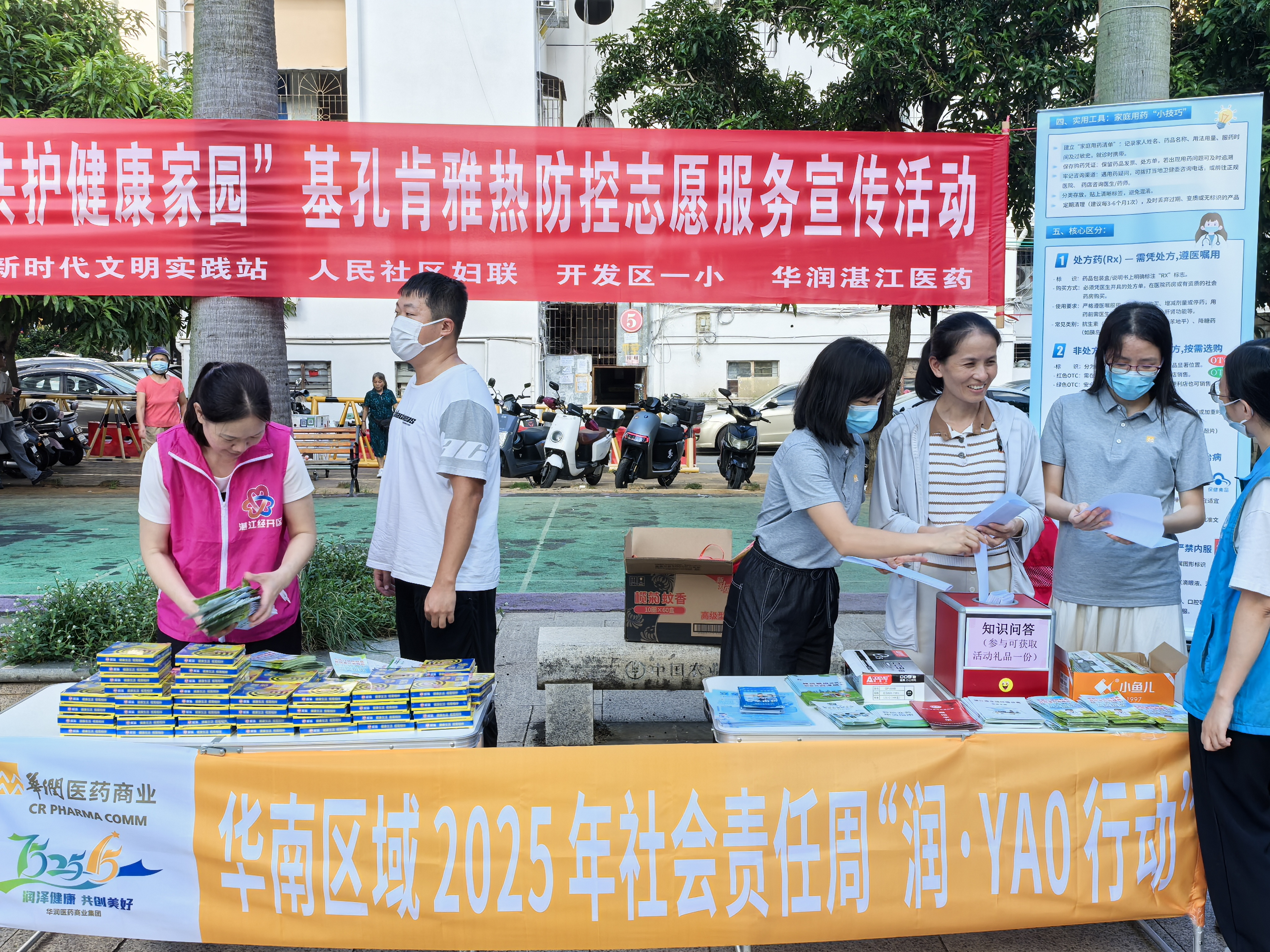 近期,結(jié)合醫(yī)商集團社會責(zé)任周安排,華潤湛江醫(yī)藥精心組織開展了“藥品安全,同心同行”系列宣傳活動,由行政部、質(zhì)量部組成的志愿者隊伍走進社區(qū)、學(xué)校、公園,向民眾宣傳安全用藥相關(guān)知識。