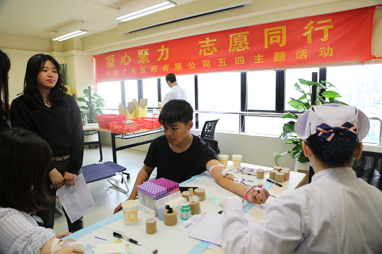 2019年5月10日,“凝心聚力 志愿同行”五四無償獻(xiàn)血活動(dòng),在華潤廣東醫(yī)藥有限公司順利舉行。此次活動(dòng)由廣州血液中心的醫(yī)務(wù)人員們提供獻(xiàn)血服務(wù)支持,共有57位同事成功獻(xiàn)血,合共采集血液15600毫升。
