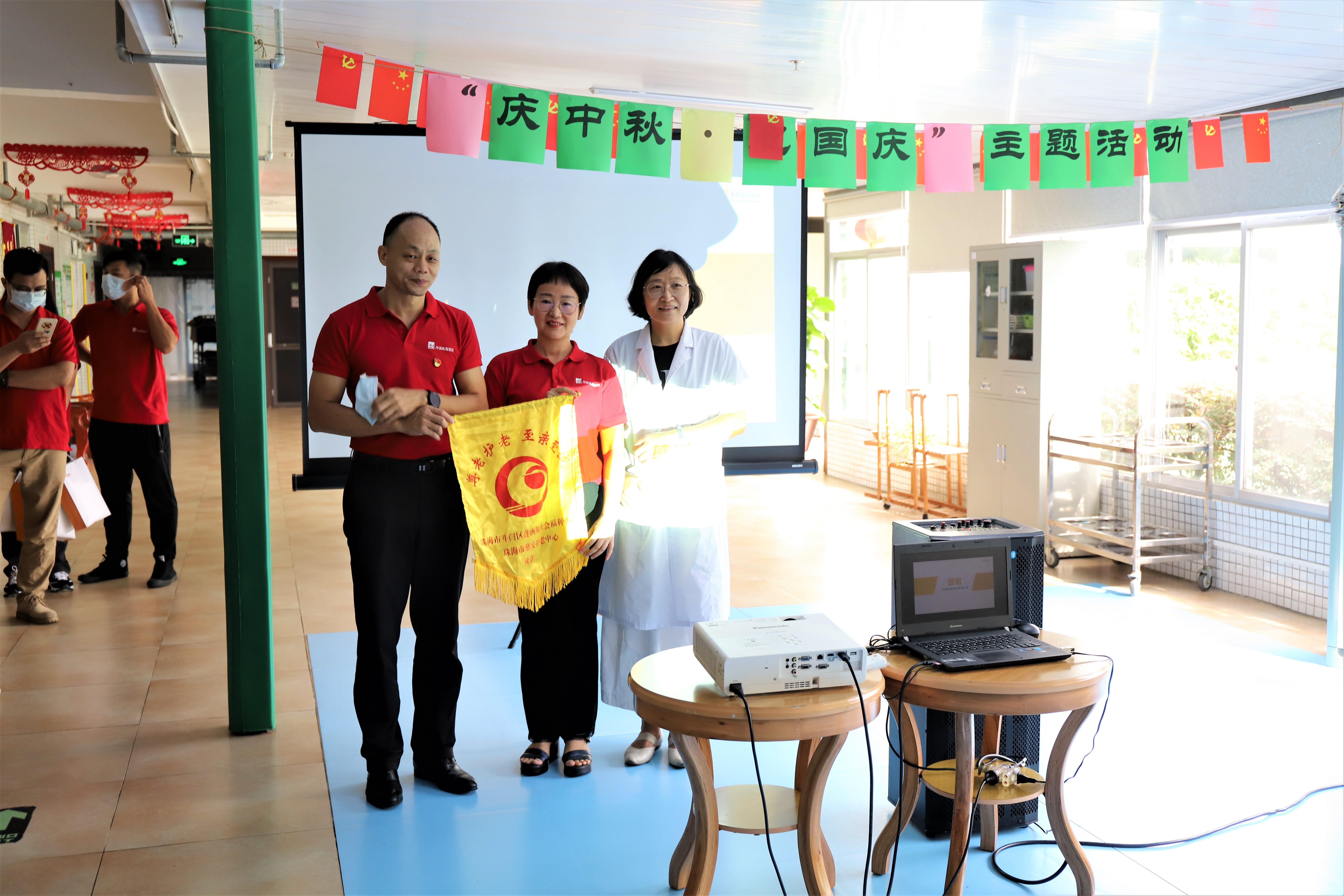 歷經(jīng)50分鐘的車程,我們到達預(yù)定的活動第二目的地——珠海市容永道養(yǎng)老院?;顒娱_始時,公司工會委員會葉主席帶來華潤集團的發(fā)展歷程及華潤珠海醫(yī)藥有限公司的介紹,講述紅色文化基因下,華潤珠海醫(yī)藥踐行社會責(zé)任的使命與擔(dān)當(dāng)?,F(xiàn)場容永道養(yǎng)老院梁院長為本次愛老、敬老、助老活動贈旗致意,對本次活動表示肯定和支持。