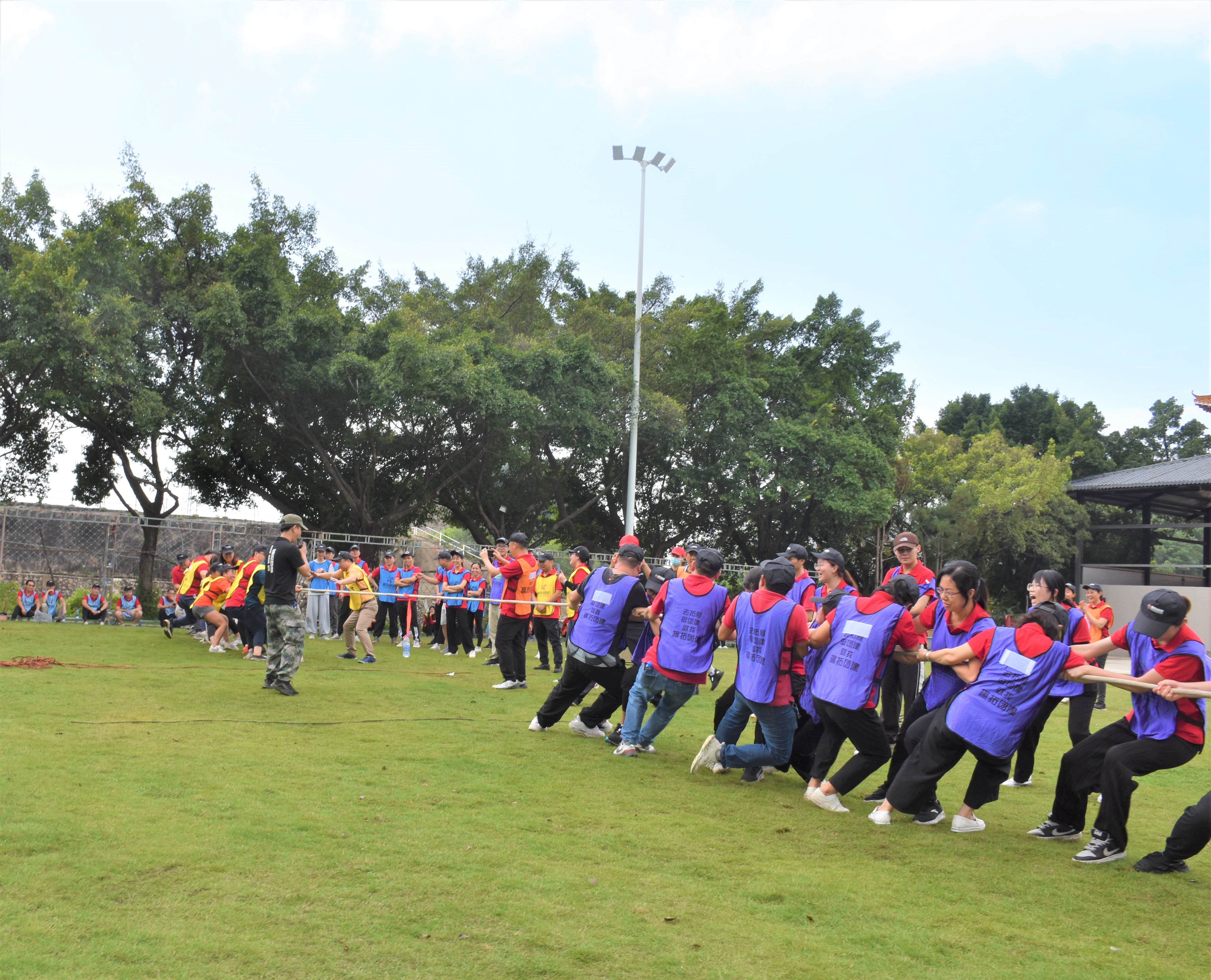 首先進(jìn)行的是“飛盤運(yùn)動(dòng)”,各隊(duì)根據(jù)防守輪換的方式,閃躲對(duì)方飛盤,存留人數(shù)最多的隊(duì)伍獲勝,既鍛煉了隊(duì)員的戰(zhàn)術(shù)部署及隨機(jī)應(yīng)變能力,又體現(xiàn)了團(tuán)隊(duì)協(xié)同作戰(zhàn)、統(tǒng)一對(duì)外的精神。接著是跑男系列游戲 “撕名牌混戰(zhàn)”。游戲前的刺激氛圍,游戲中的同心協(xié)力,聚焦目標(biāo),消除了彼此隔閡,助燃斗志。最后隆重登場(chǎng)的是“拔河大賽”,為了團(tuán)隊(duì)的榮譽(yù),大家都擰成一股繩,蓄勢(shì)待發(fā),奮力一搏。